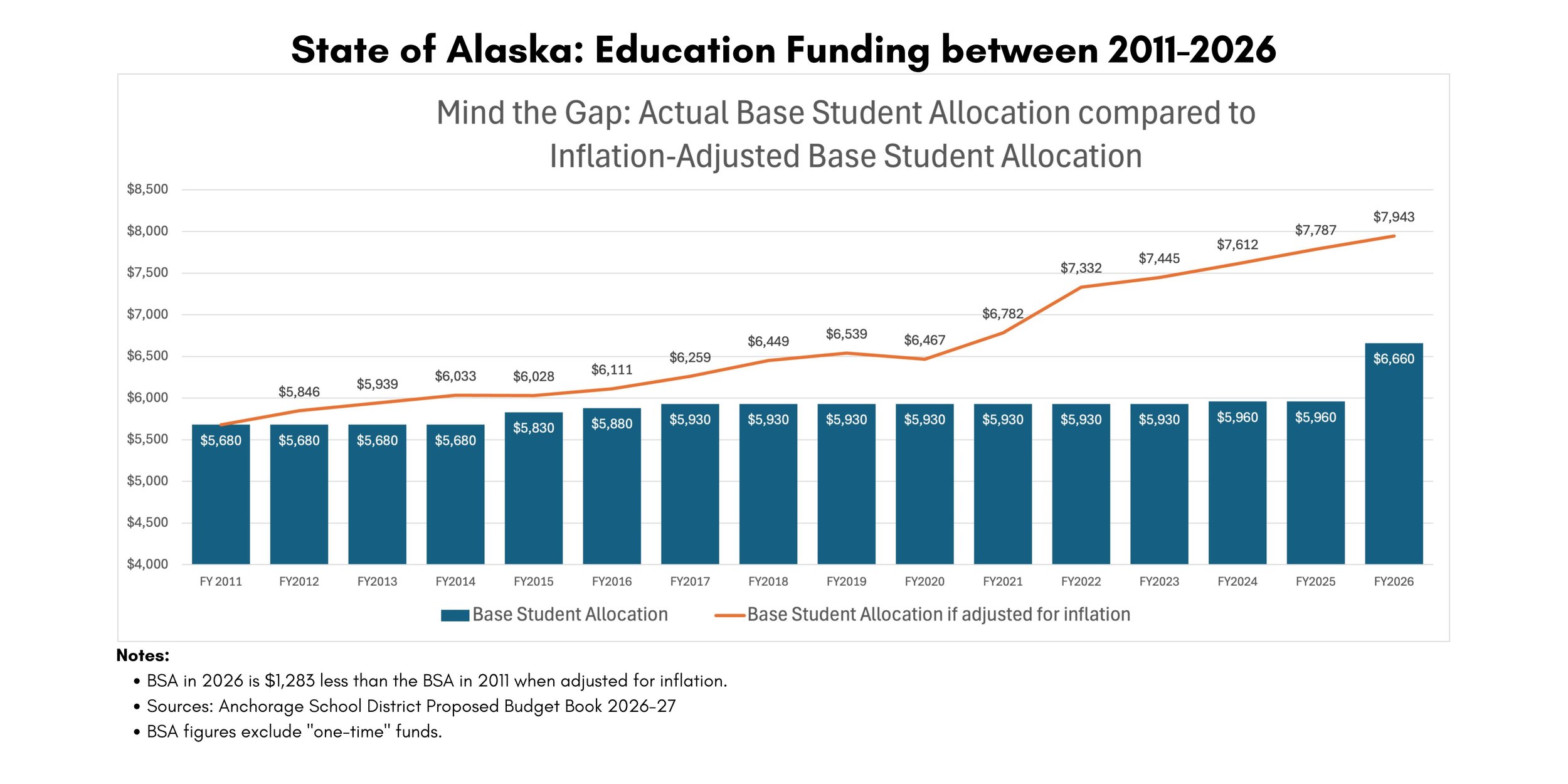 *Based on the inflation-adjusted value of the Alaska State BSA in 2011.